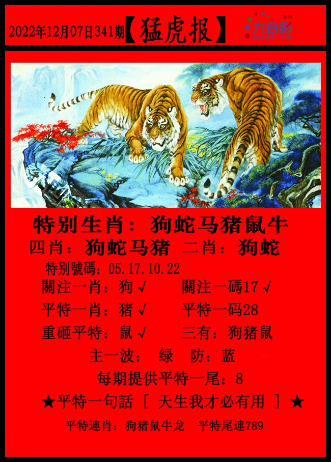 | 341期:平特一肖:狗 |